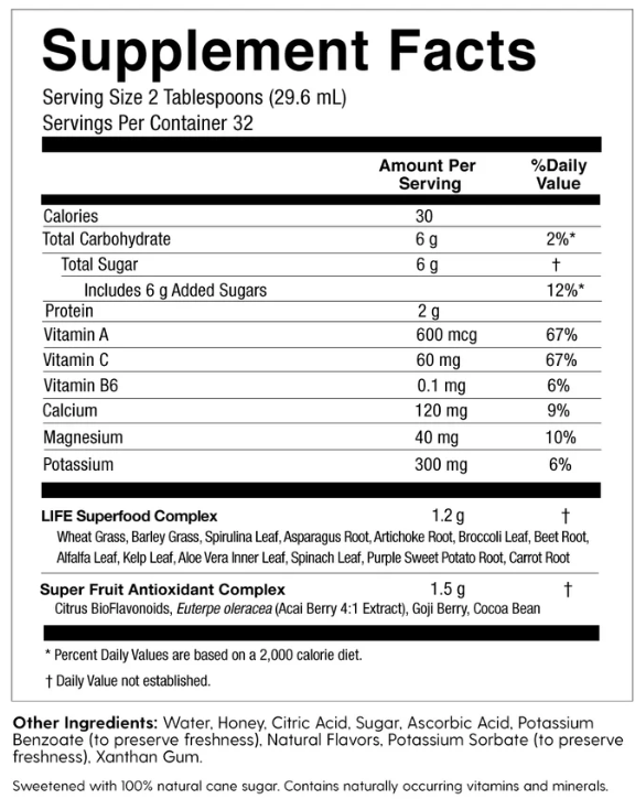 Even with a healthy diet, it’s tough to get all the essential greens and antioxidants your body needs. LIFE is a cold-pressed super greens blend designed to support digestion, boost energy, and fuel overall wellness—so you can feel your best, every day.*